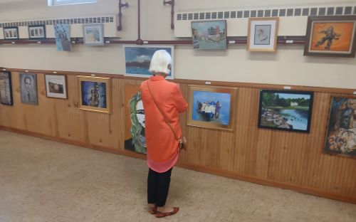 Parishioner looking at the art work